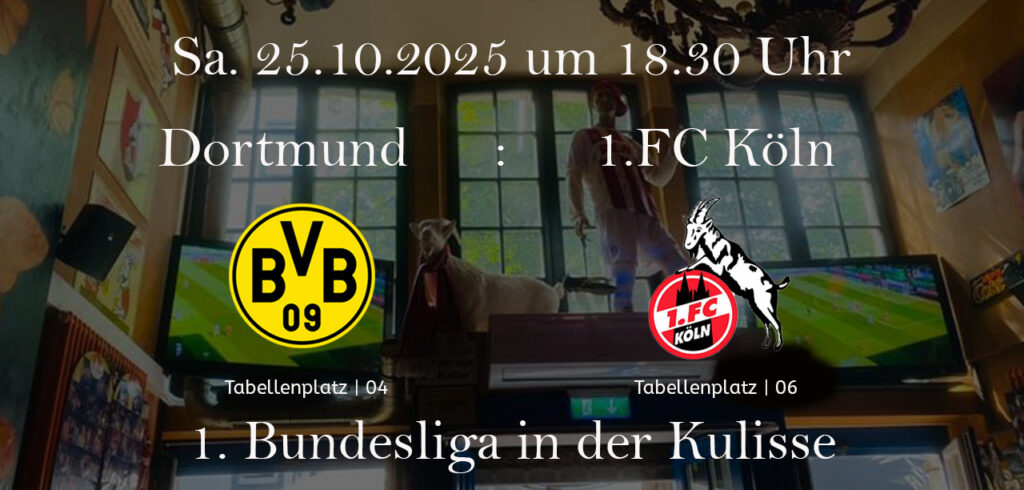 Am Samstag, den 25.10.2025 um 18:30 Uhr, spielt unser Effzeh im Auswärtsspiel gegen Dortmund.