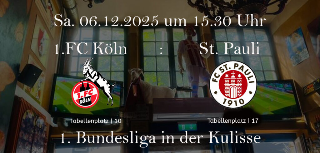 Am Sammstag, den 06.12.2025 um 15:30 Uhr, spielt unser Effzeh im Heimspiel gegen St. Pauli.