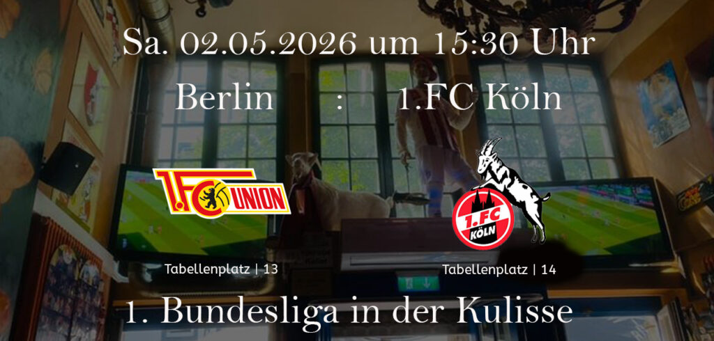Am Samstag, den 02.05.2026 um 15:30 Uhr, spielt unser Effzeh im Auswärtsspiel gegen Union Berlin.